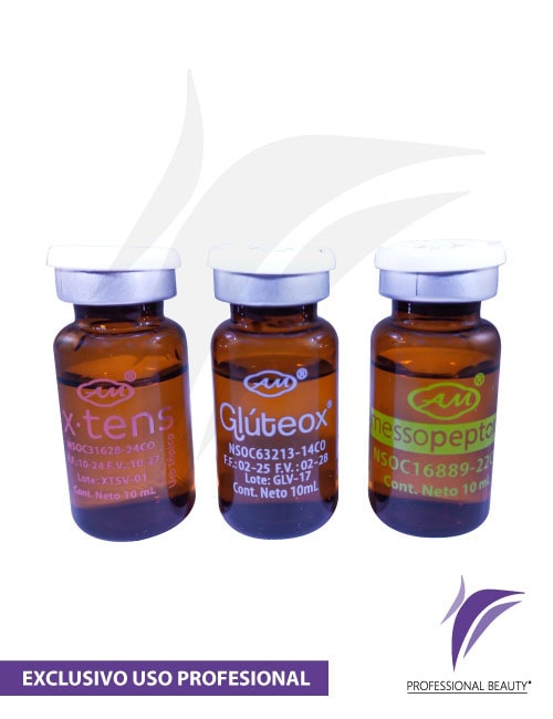Mix Gluteox: Novedosa presentación en kit de 3 referencias de productos ( X-Tens – Gluteox -Messopepton). Acondicionador corporal que optimiza y mejora la apariencia de la piel.