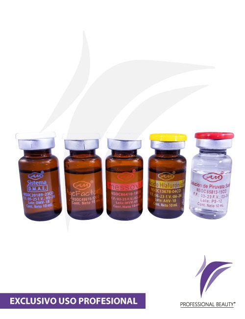 Mix Rejuvenecimiento. Novedosa presentación en kit de 5 referencias de productos (Age factor – Messovit -Acido hialuronico – Piruvato Sódico -Sistema antiedad DMAE ). Optimiza la lozanía y vitalidad de la piel. Protege y mejora la luminosidad de la piel y devuelve el tono saludable a la piel del rostro y cuerpo.