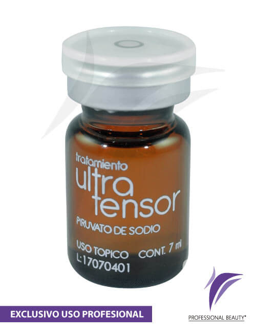 El tratamiento ultra tensor por su alto contenido de piruvato de sodio promueve el colágeno y elastina para disminuir los signos de flacidez. Su efecto sinérgico con DMAE intensifica el efecto tensor, tiene acción reafirmante y fomenta la hidratación dando así como resultado una piel tensa con aspecto joven. Acción tensora, antioxidante y antienvejecimiento.